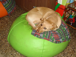 Conmigo, dice Daniel, juega con la pelotita de la foto. Nunca deja que se la agarre. Juega al revés de otros de su raza que te la entregan para que la tires lejos. Matu no, se la queda y espera que vos se la saques. Cuando los visito se queda sentado a mis pies mientras hablamos con Félix. Si me levanto, va a buscar la pelotita y “me invita” a que se la saque corriendo de un lado a otro.